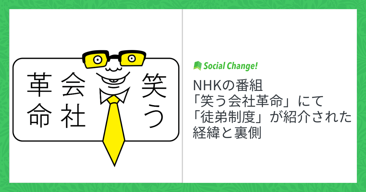 9月10日に放送されたNHK総合「コント×ドキュメンタリー 笑う会社革命」で、私たちソニックガーデンの「徒弟制度」が約10分間にわたり紹介されました。